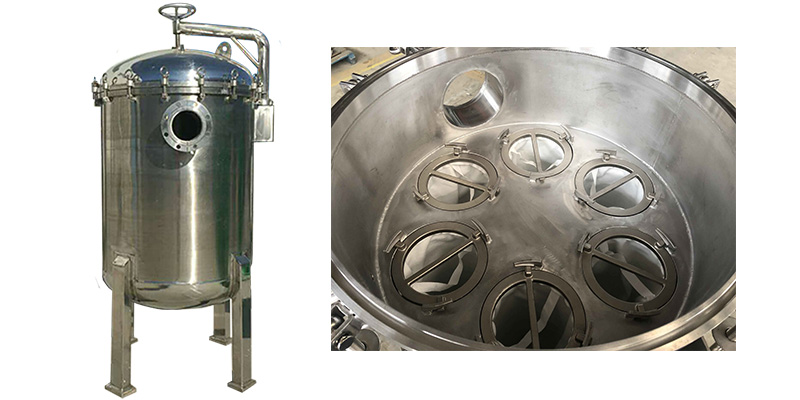 袋式過濾器是一種結(jié)構(gòu)新穎、體積小、操作簡便靈活、節(jié)能、高效、密閉工作、適應(yīng)性強(qiáng)的多用途過濾設(shè)備,該種過濾器是一種壓力式過濾裝置,液體由過濾器外殼旁側(cè)入口管流入濾袋,濾袋本身是裝置在加強(qiáng)網(wǎng)內(nèi),液體滲透過所需要細(xì)度等級的濾袋既能獲得合格的濾液,雜質(zhì)顆粒被濾袋捕捉。該機(jī)更換濾袋十分方便,過濾基本無物料消耗。