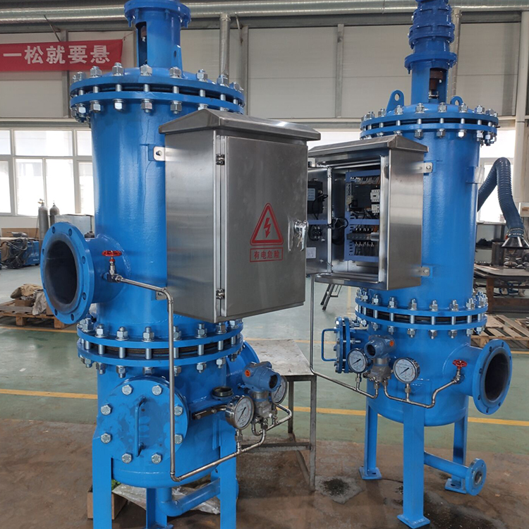 自清洗過濾器由罐體、過濾柱、反沖洗機構(gòu)、電控箱、減速機、電動或者電氣控制部分閥門和差壓控制器等部分組成。罐體內(nèi)的橫隔板將其內(nèi)腔分為濁液腔和清液腔,橫隔板上安裝多個過濾柱。水泵送來的濁液經(jīng)入口進(jìn)入濁液腔,又經(jīng)隔板孔進(jìn)入過濾柱的內(nèi)腔。大于過濾柱縫隙的雜質(zhì)被截留,清液穿過縫隙到達(dá)清液腔。所有過濾柱濾過的液體在清液腔內(nèi)匯合,后從出口送出。自清洗過濾器的廣泛地應(yīng)用領(lǐng)域于冶金、化工、電力、機械、煤炭、造紙制漿、城市給水等行業(yè)連續(xù)用水的場合,可以有效地去除工業(yè)循環(huán)水中水中機械雜質(zhì)。廢水,循環(huán)水的過濾,乳化液的再生,管道過濾器廢油過濾處理,冶金行業(yè)的煉鐵、煉鋼、軋鋼、連鑄水、高爐水、動力系統(tǒng)等。功能可去除水中泥沙、粘土、鐵銹、懸浮物、藻類、生物粘泥、腐蝕產(chǎn)物、大分子細(xì)菌、有機物及其它微小顆粒等雜質(zhì),達(dá)到水質(zhì)凈化的目的。