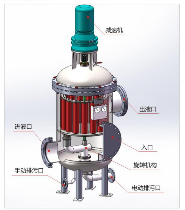 全自動多柱式自清洗過濾器為轉(zhuǎn)臂式結(jié)構(gòu)過濾器,采用機(jī)電一體化設(shè)計(jì)。這種自清洗過濾器是一種集約化的過濾器,它主要由主機(jī)外殼、電動機(jī)、減速機(jī)、差壓控制器、電控箱、閥門、精密濾芯、支撐部件、反洗臂等組成。多個(gè)濾筒安裝于一個(gè)過濾器筒體內(nèi),結(jié)構(gòu)緊湊。
