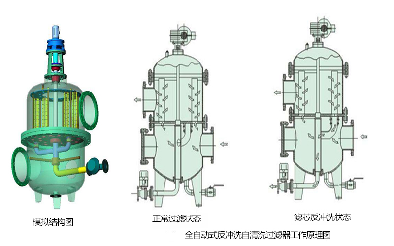 2.自清洗過濾器廣泛實(shí)用、簡便、可靠; 安裝方便:可直接安裝在官道上,無需建過濾間,特別適合于各種工藝條件下的現(xiàn)場使用;