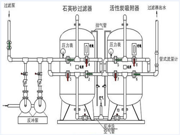 國內(nèi)外廣泛使用的是填充石英砂、活性炭兩種濾料的多介質(zhì)過濾器,利用石英砂生物截污能力,可以有效的去除水中的大顆粒物,膠體,懸浮物等;利用活性炭的吸附能力,可以有效的去除水中的余氯、顏色、異味等。