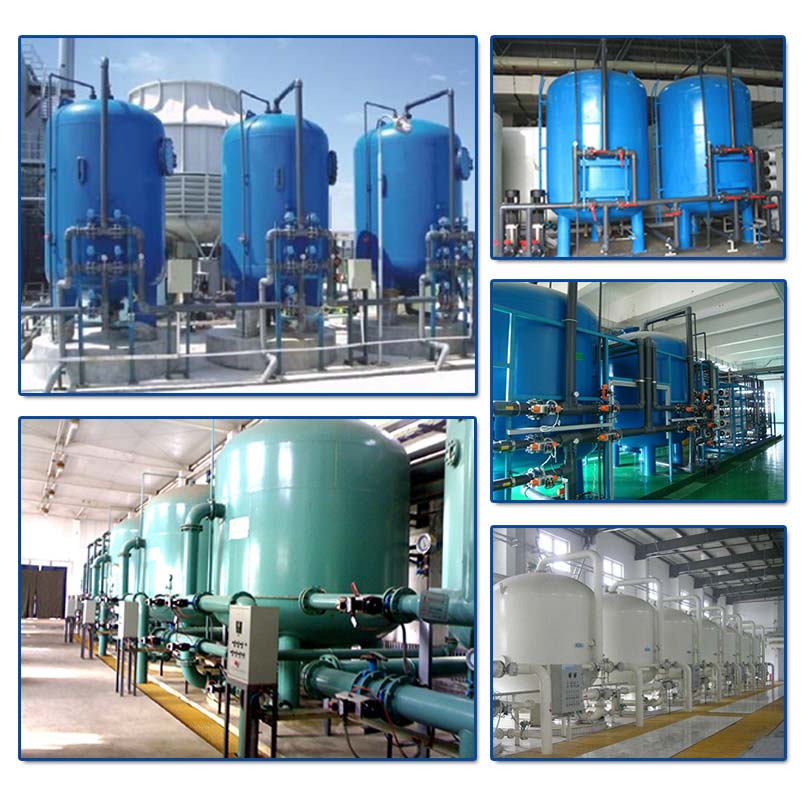 活性炭過濾器上部設(shè)有進(jìn)水裝置,下部設(shè)有排水裝置,運(yùn)行時(shí),水經(jīng)上部進(jìn)入,流經(jīng)活性炭過濾層,從底部流出。利用活性炭的表面有大量的羥基等官能團(tuán),可以對(duì)各種性質(zhì)的物質(zhì)進(jìn)行化學(xué)吸附,除去水體中異味、有機(jī)物、膠體、鐵及余氯等,同時(shí)降低水體的濁度、色度,使水質(zhì)清澈透明,減少對(duì)后續(xù)系統(tǒng)(反滲透、超濾、離子交換器)的污染。