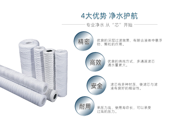 7、線繞濾芯由不同多種材料制成,確保各種液體過濾要求,達到較佳過濾效果。